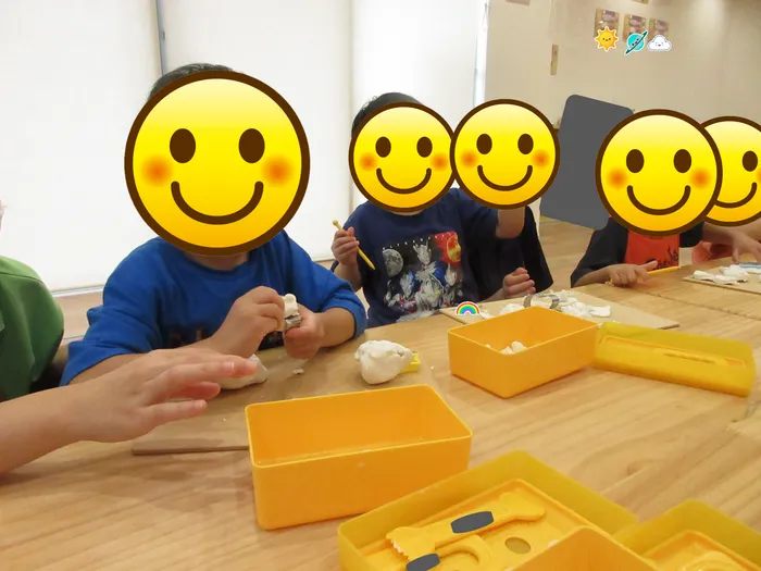 先週の金曜日の活動は、粘土を行いました🤗子ども達は、先生の話を聞いて粘土を丸めてクマやウサギ、おにぎりを上手に作ることができていました🐻🐰🍙最後の時間には、型抜きや好きな物をそれぞれで作り、みんな楽しそうに活動に取り組んでいました🥰🎶