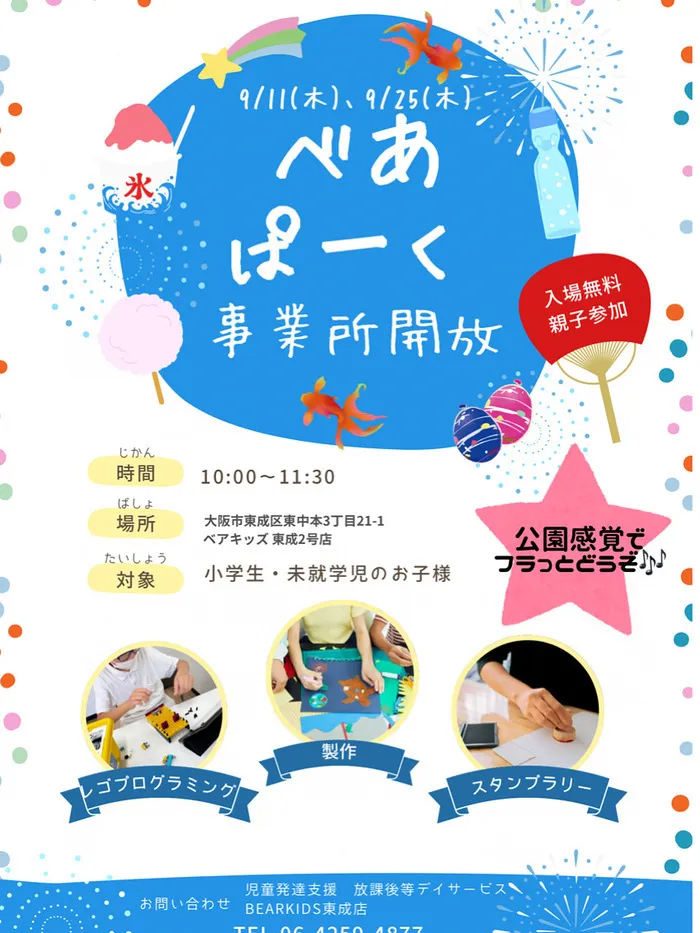 今回の一般開放では、ベアキッズで人気の活動を体験できます!
