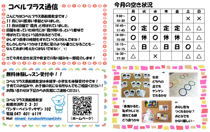 そんなミニコーナーもありつつ、空き状況や先月の取り組みも紹介しています!