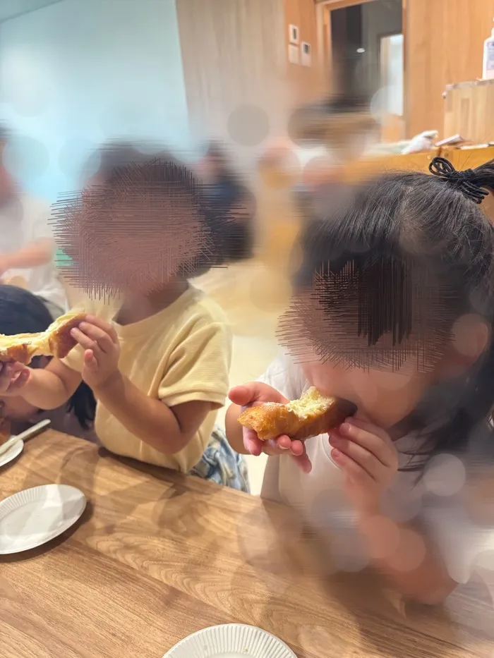 マーガリンが何なのかを知らないお友だちがいると、「バターとちょっと似てて〜、柔らかくて〜」と、お友だち同士で教えてあげる姿も見られましたよ。