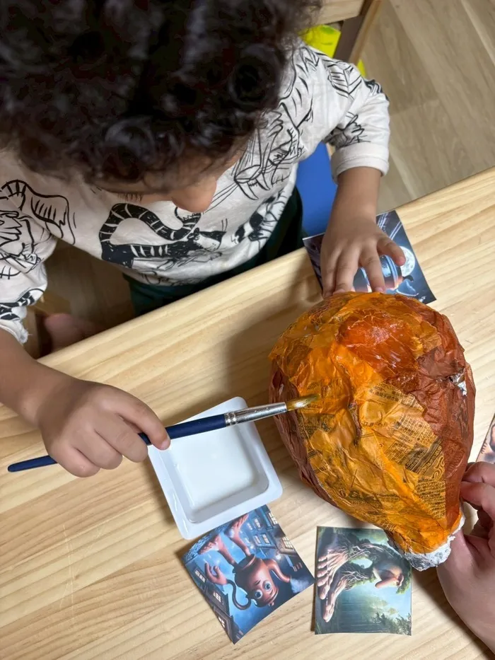 • 微細運動と道具操作: 風船を膨らませる、新聞紙を糊で貼り付けるという工程は、指先の操作性(微細運動)や道具の操作スキルを養います。また、乾燥を待つ時間は忍耐力を育む機会です。