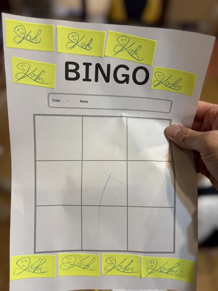 • 自発性の促進: 「ビンゴを完成させる」という目標があるため、受動的ではなく「自分から話しかけ、質問しに行く」という自発的な発話を促します。