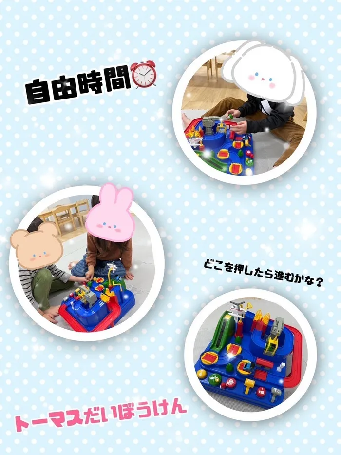 最近新しく仲間入りしたトーマスのおもちゃにみんな興味津々🥰