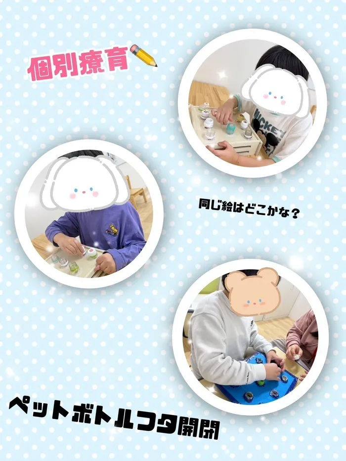 ペットボトルのフタ開閉は手指の巧緻性の向上や、目と手の協応動作の促進といったねらいがあります👀
