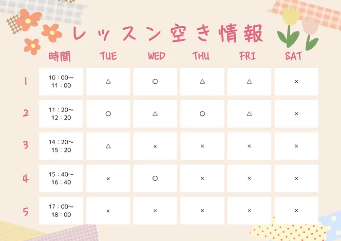 満室になっているお時間もありますが、集団レッスンの枠は空いているのでお気軽にお問い合わせください。