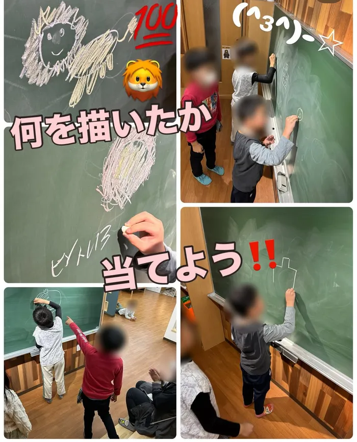 黒板に描いた絵から何を描いたか皆んなで当てるゲームで