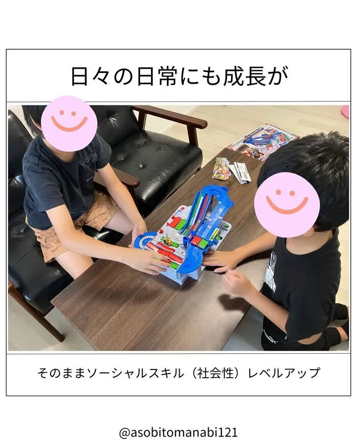 通所から半年。最初は友達と一緒に長く遊ぶのが難しかった子が、今日は「譲る」「我慢する」という姿を見せてくれました😊