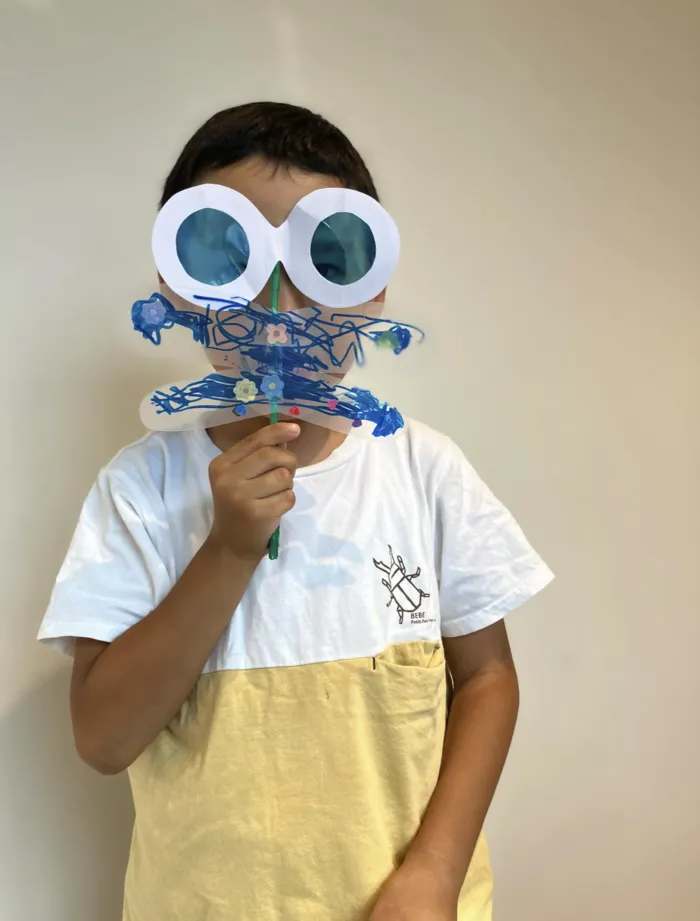 想像力を働かせて子どもたちそれぞれの素敵なトンボの眼鏡が完成しました!
