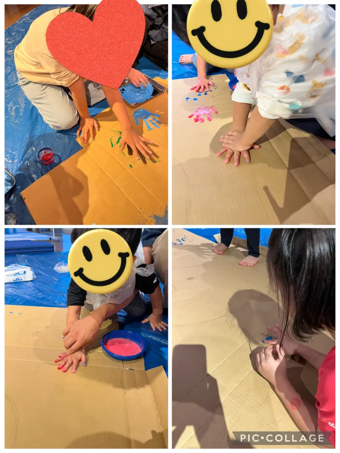 先日は、ハンドペイントで水族館のイラストパネルを作りました!小さな手で小魚ペタペタ。。指先使って、ニョロニョロ海藻。。絵具を豪快に使って、ピンクの顔のイルカさん。。子供達の可能性は∞無限!素敵なイラスト完成です🐟