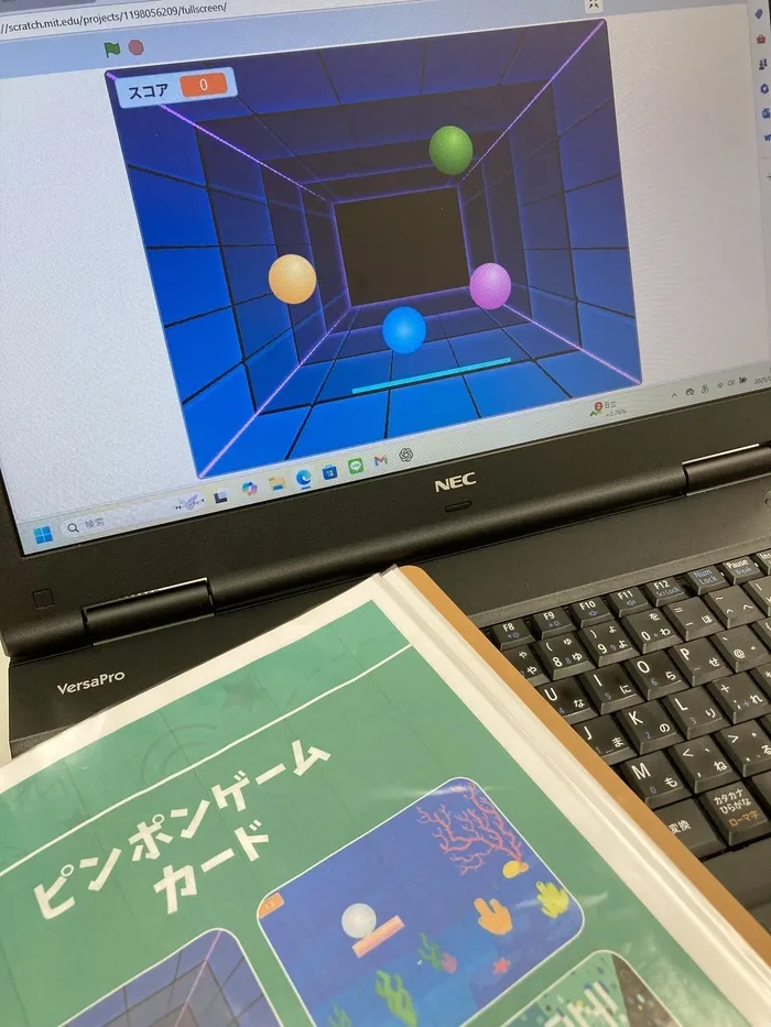 たとえば制作の過程では、「どうやったらボールが跳ね返るの?」「スコアってどう数えるの?」といったことを考えるため、論理的思考力や試行錯誤する力が育まれます🌱