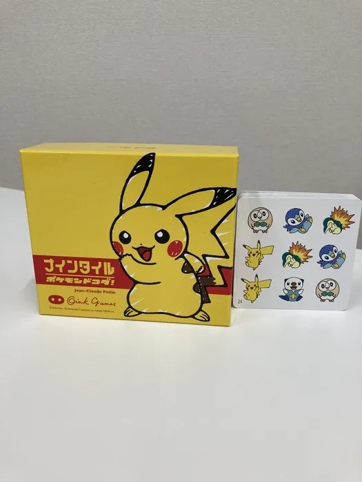 このゲームは、子供に人気のポケモンのキャラクターのカードゲームです。お題カードの並び通りに、手持ちのポケモンのキャラクターを速く並べられた人が勝ちになります。「ピカチュウどこー?」や、「イーブイがいなーい!」など、カードを探すときにこんな言葉が飛び交います。速く並べた時には達成感があり、みんなで盛り上がる楽しいカードゲームです!