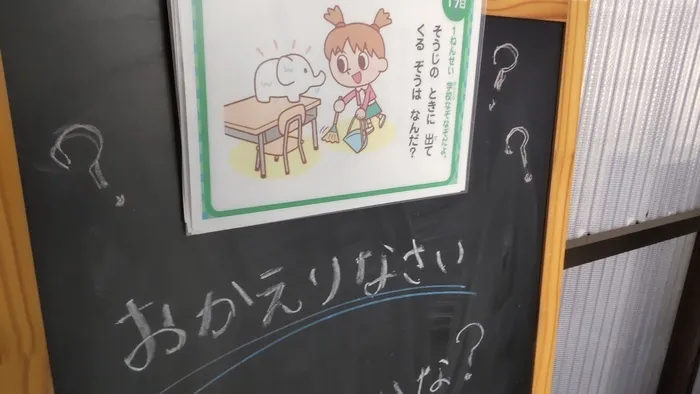 最近、ここえみ朝日教室の玄関には「クイズ」や「なぞなぞ」が登場します。