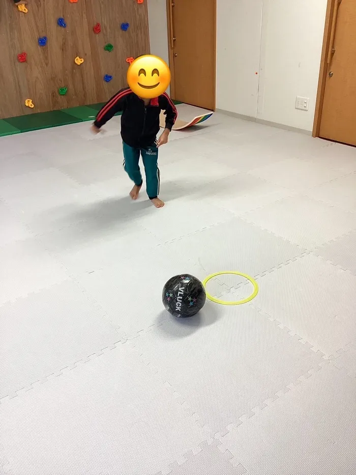 ボールをよく見て、足のどこで蹴るかを考えながらキック!やったー!入った!もう一回やる!と大盛り上がりでした😊