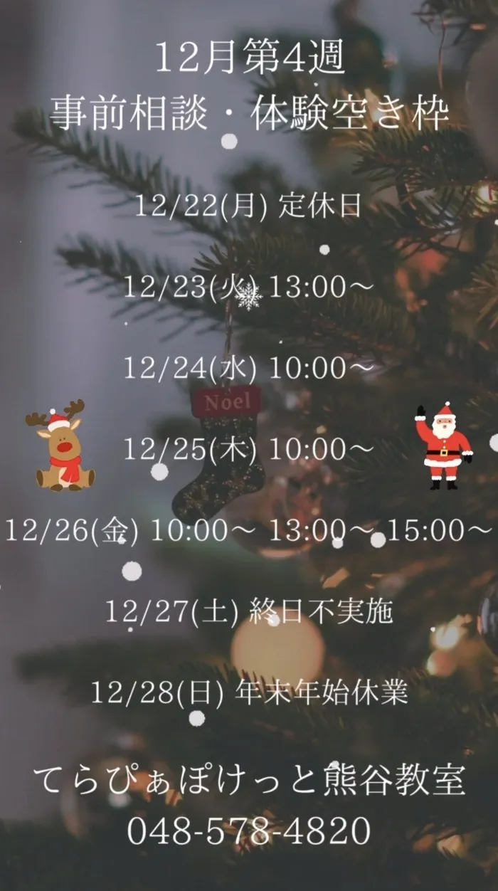 12月第4週の事前相談・体験の空き枠をご案内します。