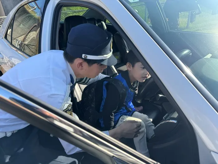 パトカーに乗る体験もさせてもらえて嬉しそうです😊