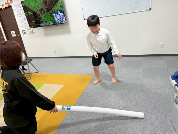 プールスティックに当たらないように、タイミング良くジャンプ!