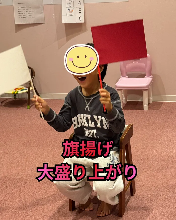 今日の支援は5領域の中の運動感覚としてハタ上げゲームをしました。聞く力と集中力、判断力や空間認識能力を養うこと、運動能力の向上を目的としました。
