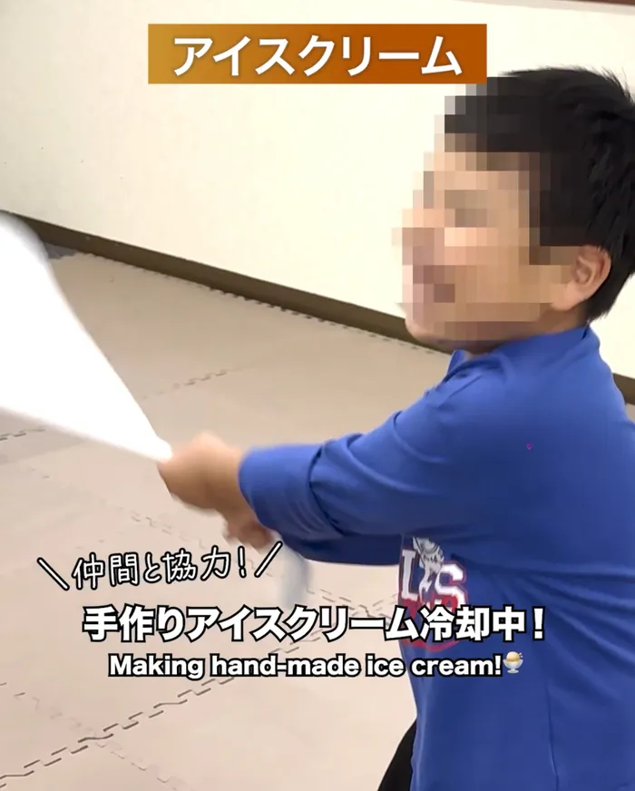 🍦塩バニラアイス作りでは、氷を入れたTシャツの中でアイスの材料をクルクル回転✨
