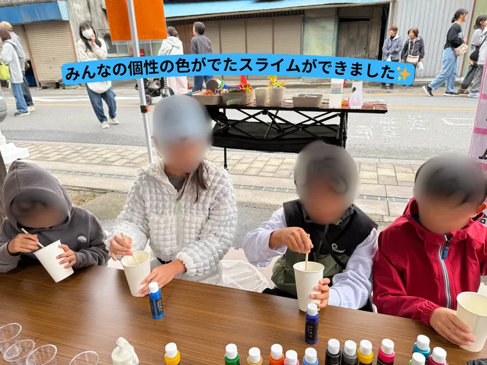 先日、地域の手づくり市に参加し、「スライム作り体験」を行いました✨