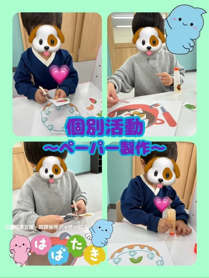 今回ははハサミとのりを使ったペーパー製作の様子を