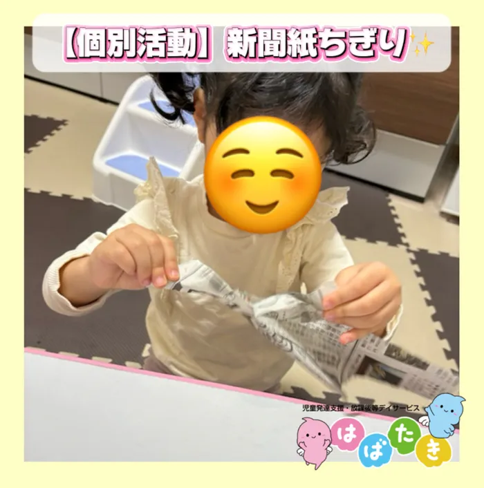 今日は【個別活動:新聞紙ちぎり】の様子をご紹介します📰✨