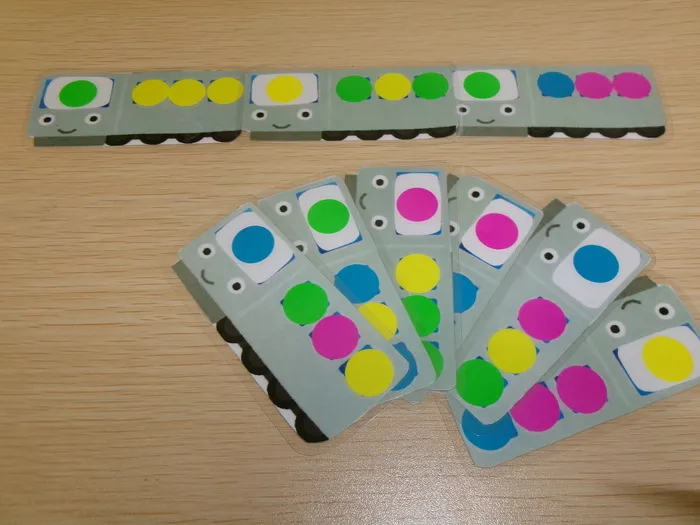 電車の先頭の色とおしりの色をあわせ、連結して遊びます。