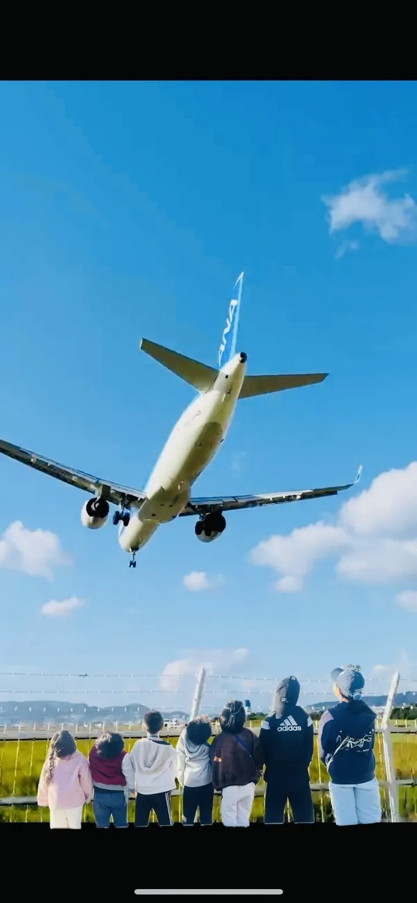 滑走路の近くの土手から、頭上を✈️が着陸していきます🛬