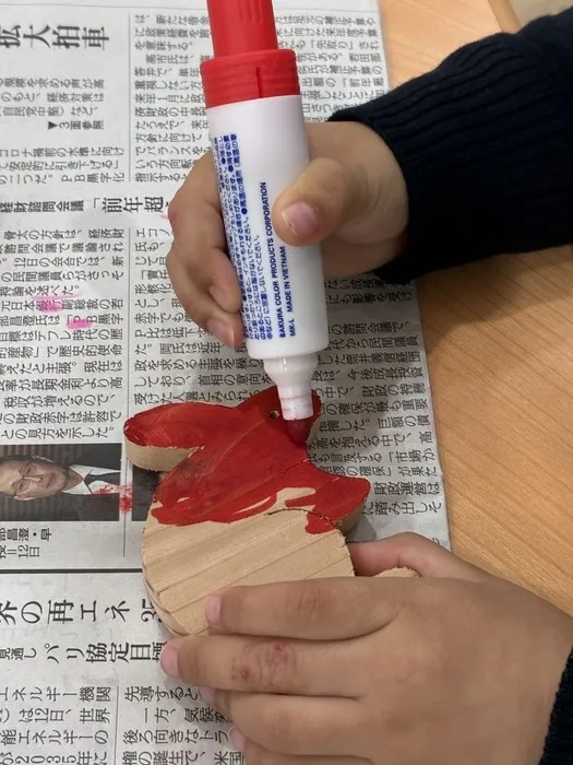 寄付していただいた木製パズルに色を塗ってくれました😊