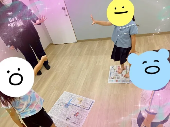 じゃんけんのルールをわかっている子もいれば不確かな子もいますがゲームを進めていくうちにルールを理解し、じゃんけんも楽しみながら新聞が小さくなっていくのをドキドキしながら楽しむことができます🫶