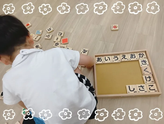 平仮名、数字、色に興味を持ち出したお子様が、それぞれ自分なりに並べてみたりと楽しんでいる様子がよく見られます🎶