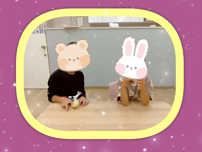 みるとでは、さつまいもご飯をラップの上からコロコロ転がして一口サイズのおにぎりを作ってもらいました🫶💟