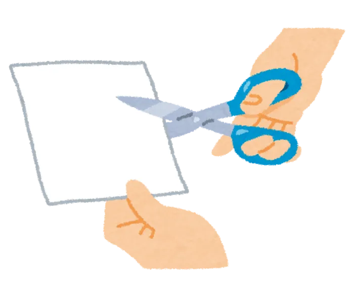 二つ折りにした画用紙を、線に沿ってハサミでチョキチョキ✂️