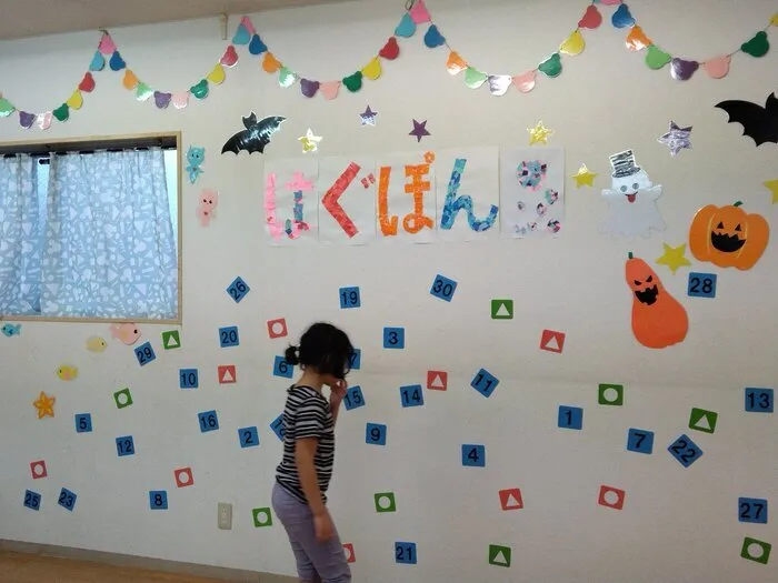 壁にランダムに貼られた数字を一人ずつ1から順にタッチ!!