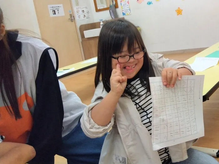 先生に教えてもらったコツを徐々に習得し花丸をもらった用紙を得意げに見せてくれる子どもたち!