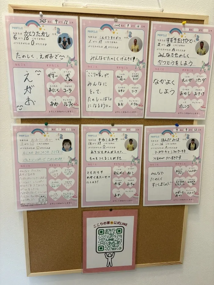 入り口に掲示してあるので、施設に来てくださった方が「こんな人が支援してくれるんだ」と、少しでも安心できるきっかけになればと思っています。