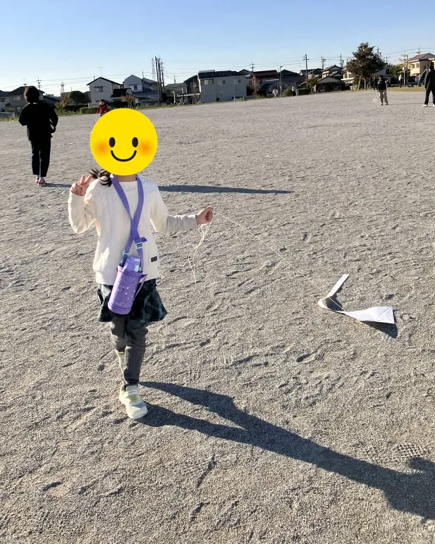 最初は公園の広いスペースを使って「たこあげ」にチャレンジしました🪁✨