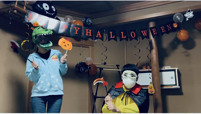 お部屋には、カボチャやおばけの飾りが並び、いつもの場所が少しだけ特別な空間になっています。