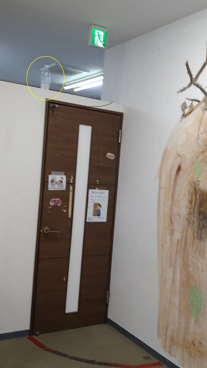 ドアの上にしっかりとペットボトルが立ちました🙌