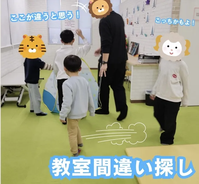 まずは、教室に置かれているおもちゃや備品の位置を、子どもたちにしっかりと観察してもらいました。