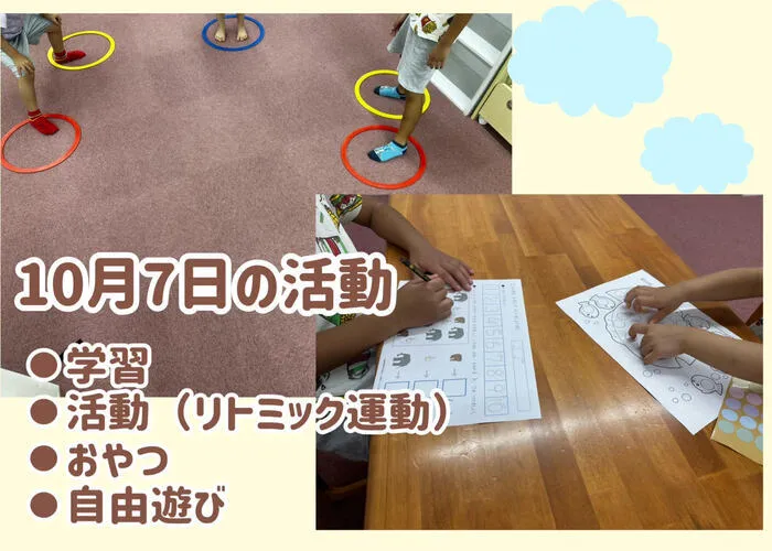 音楽に合わせて体の動きを変化させたり指示を聞いて動くリトミック運動を行いました!