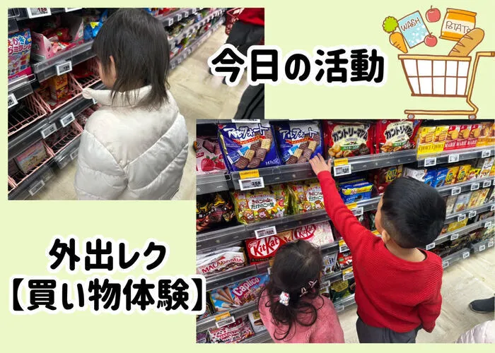 外出レクでは、お店でおやつを選んで購入したり、屋外で体を動かして遊ぶ経験を通して社会性や生活スキルを育てることができます。