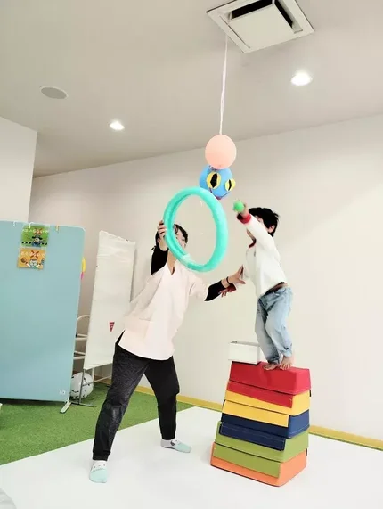 さらに、五感を刺激する「新・五感運動療育」を取り入れ、バランス遊びや手先の操作、音や視覚の感覚刺激など、遊びを通じて発達を促します。