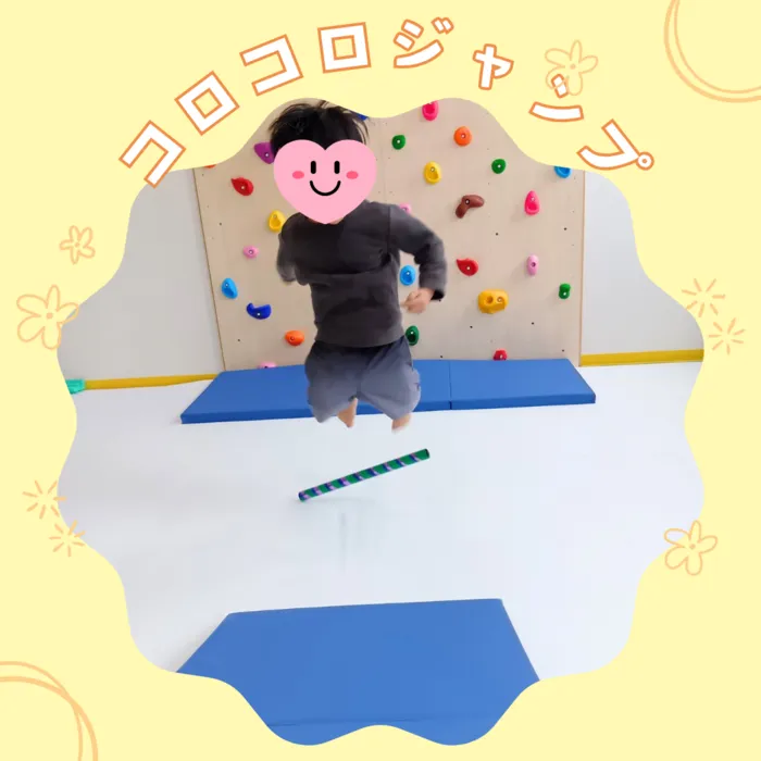 今日来てくれたお友達もコロコロジャンプに挑戦!集中して棒を見ながら、タイミングを合わせてジャンプすることができました。