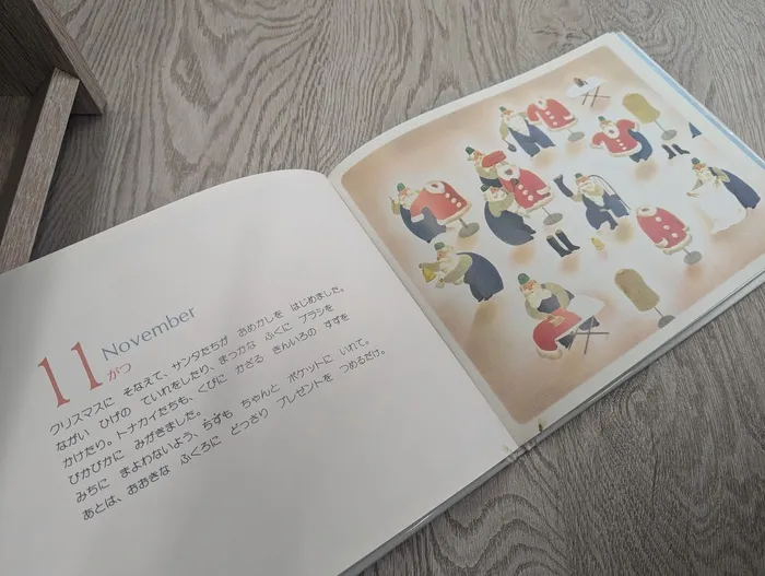 絵本の中ではサンタさんがプレゼントの準備を始めているようです🎁