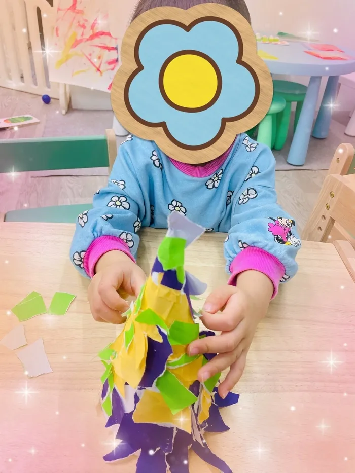 色も形も違う紙の切れ端を集めて作るクリスマスツリーには、不思議なあたたかさがあります 🌿✨