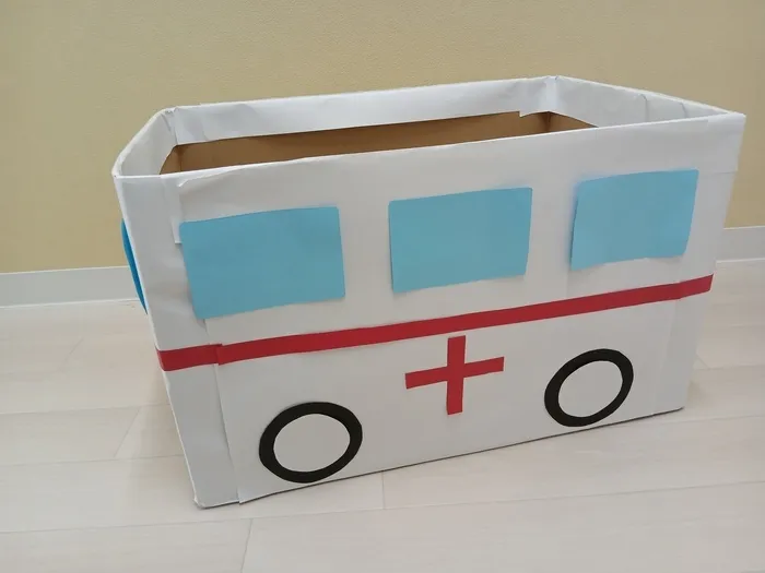 段ボール救急車は軽くて安全、室内でも楽しめる人気の活動。