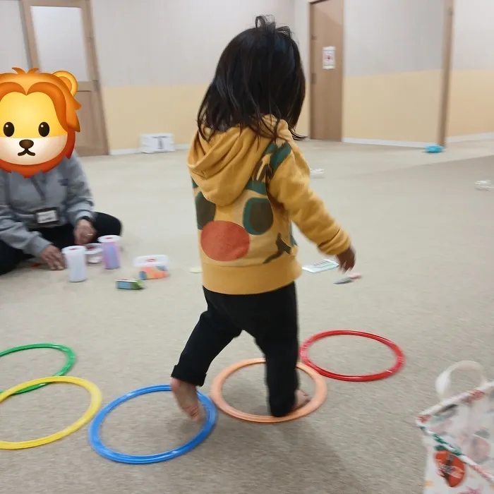 続いては、ケンケンパリングを使って体幹を鍛えたり、バランス感覚を養ったり、運動能力を高めたりしました。この楽しい活動はお気に入りで、夢中になって走り回る姿が印象的でした。🏃♂️💨