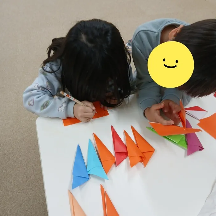 自由時間には、創造力が爆発!折り紙でネイルショップを開いたり、即席の本屋さんを作ったりして遊びました💅📚