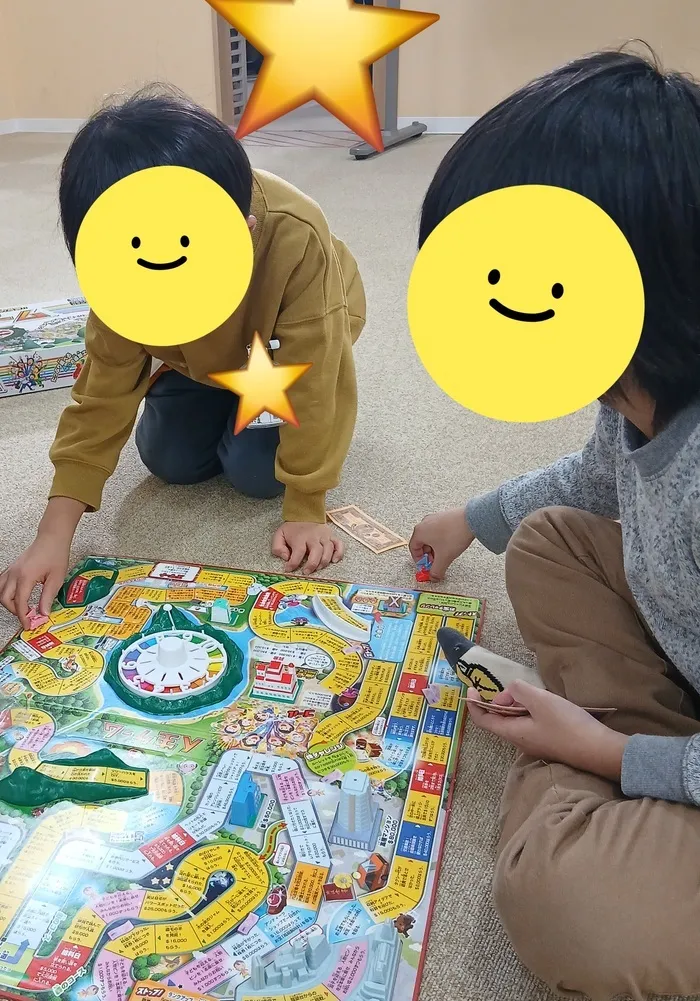 チャンバラ⚔️を通しては、他者とのコミュニケーションスキルが磨かれました✨その後人生ゲームを行い、楽しみながら思考力と自己選択能力を高めました。ルーレットを回すときには手先の器用さも育まれました😊遊びを通じた学びって本当に素晴らしいですね!