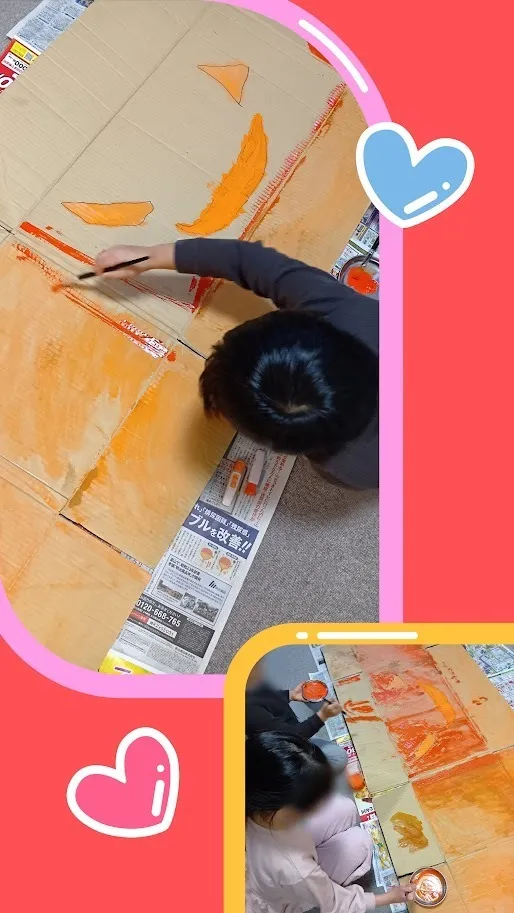 2日目・3日目は「段ボールでジャックオーランタンを作ろう」企画の色塗り!